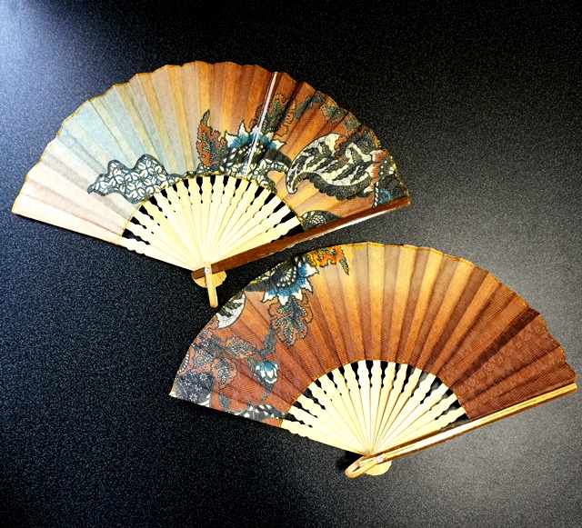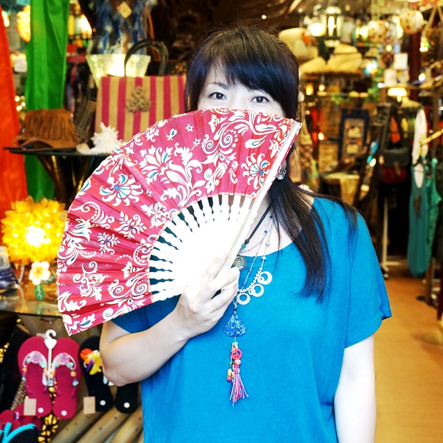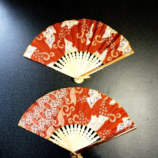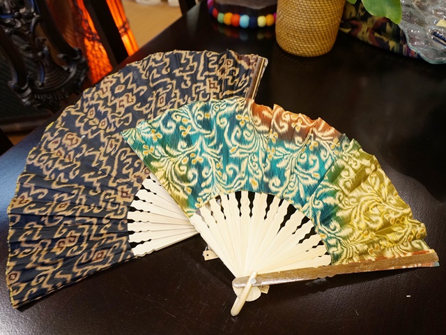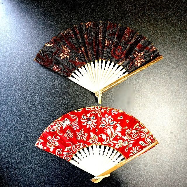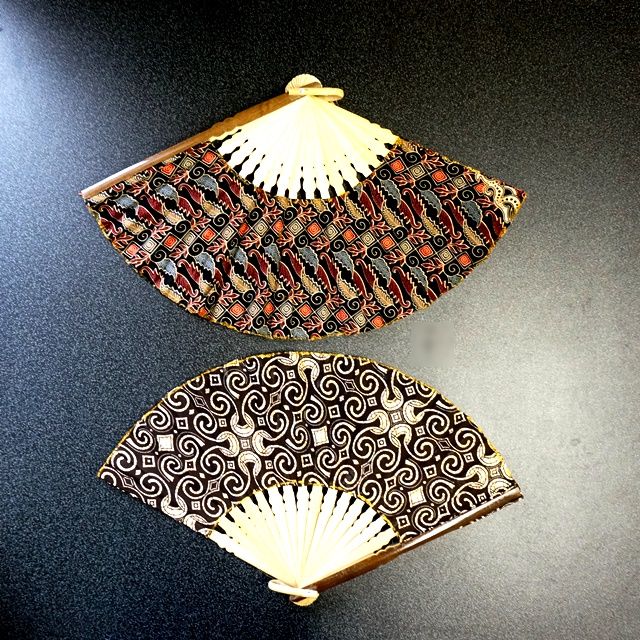 バリ島の扇子は、竹の骨組みに、バリ伝統のバティック布を貼ったもの。