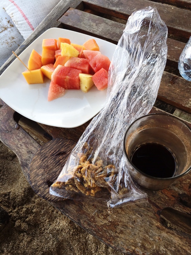 ビーチでなじみのアグスに差し入れをもらった。