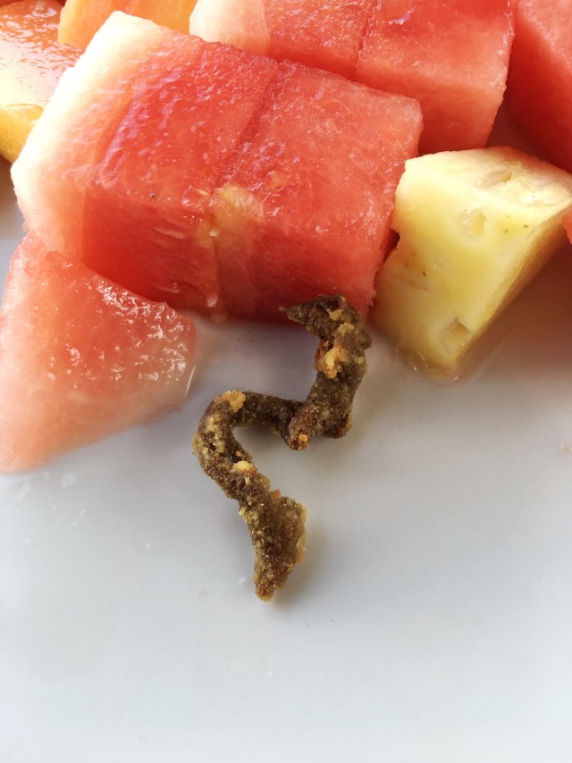フルーツと、何かわからん揚げ物。 カレー味。