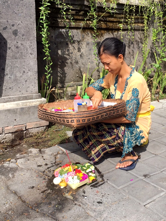 バリの人は皆信心深く、日に何度もチャナンを捧げ、お祈りする。