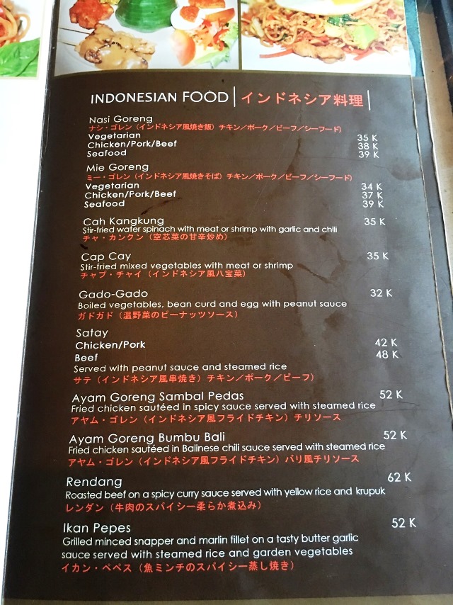 あまりクセがなく日本人好みの味。 メニューには日本語も載っていて安心。