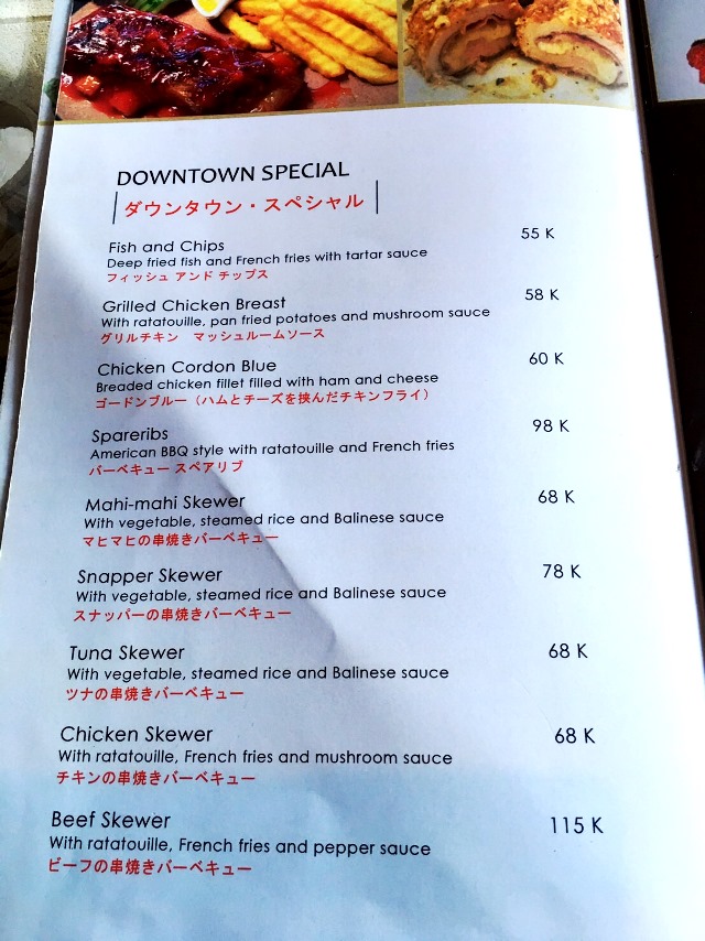 カフェロカの前からベモに乗って、サヌールで人気のワルン・ダウンタウンへ。