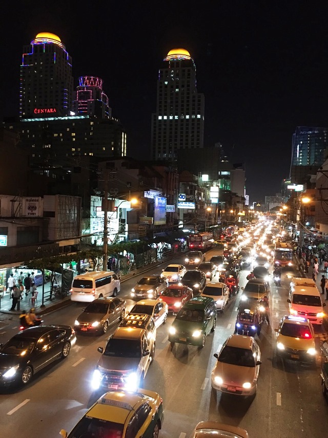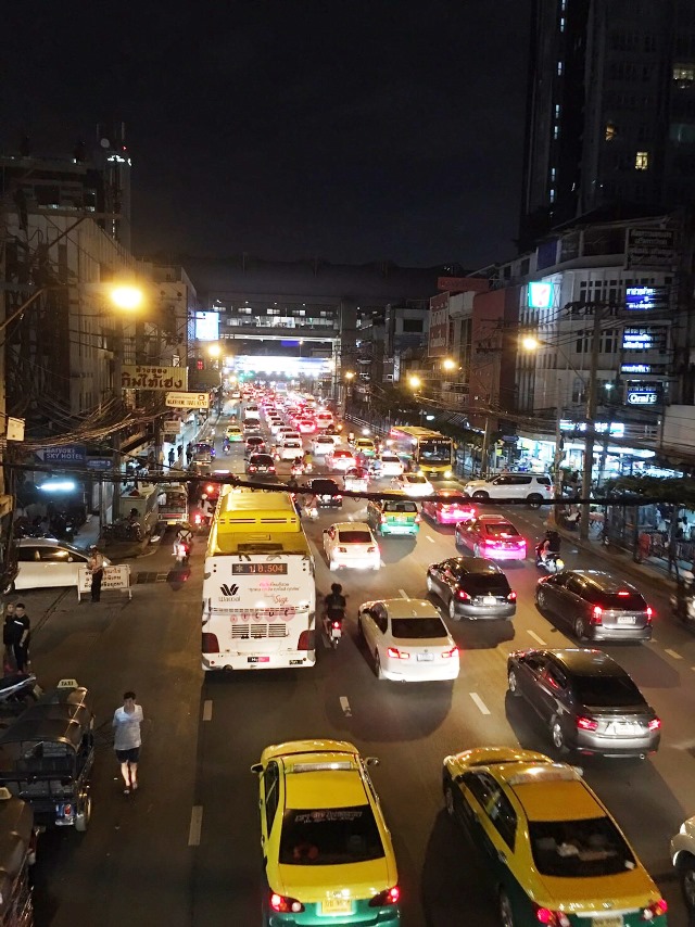 夜遅くなっても、バンコク名物の渋滞が続く。