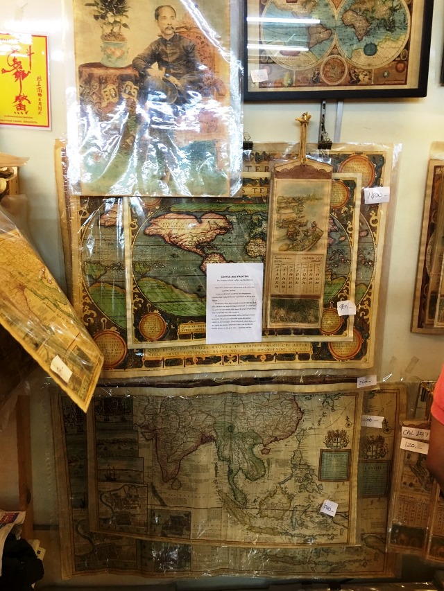 雰囲気のあるレプリカのアンティーク地図や写真などを扱う店。