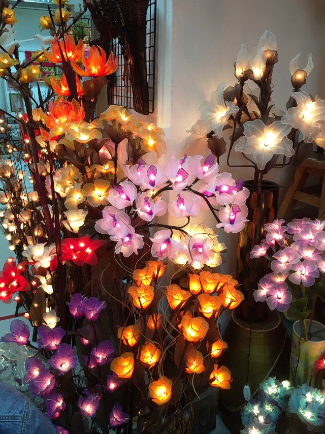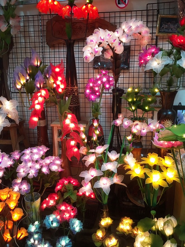 電球を仕込んだアートフラワーのランプ。