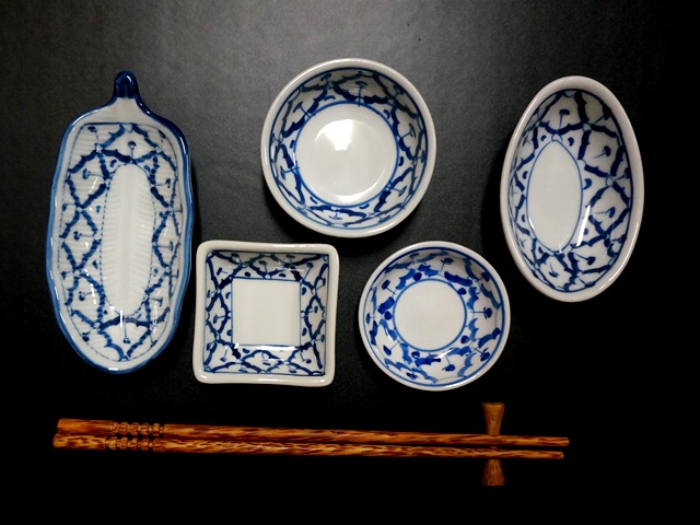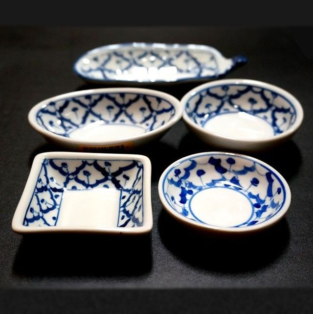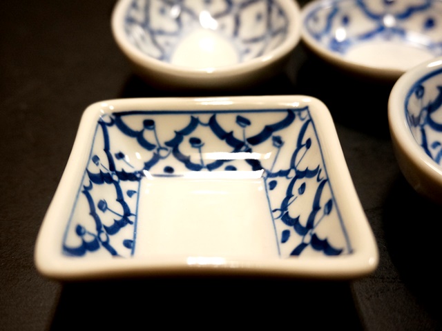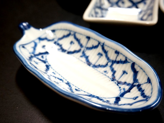 ブルー&ホワイトの陶磁器/豆皿 タイ染付/アジアンキッチン雑貨