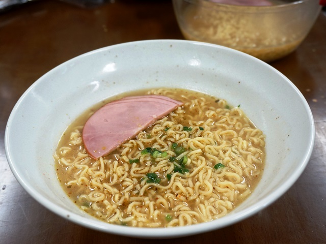 トッピングはハムとネギ。冷凍ネギだったのでちょっとクタッとなって残念(^_^;)