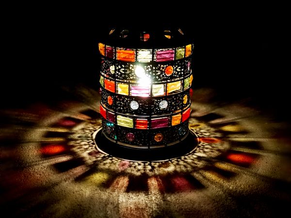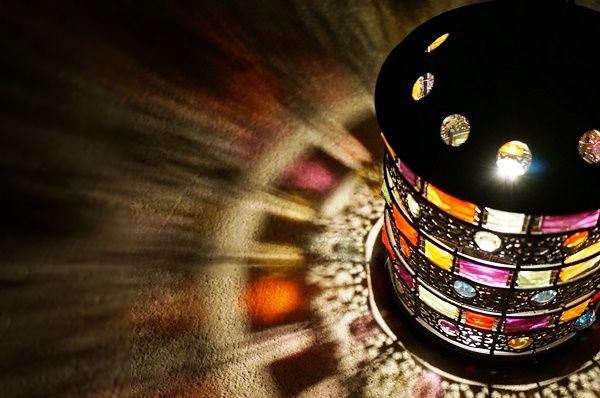 暗い部屋で灯りを灯すと、何とも美しい色と影が浮かび上がります。