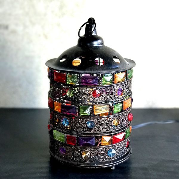 アンティーク風ランタン/ビーズとアイアンのインテリアランプ