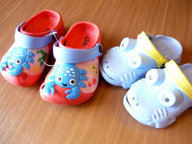 クロックスタイプで、カエルなどが立体的について、かわいいです!