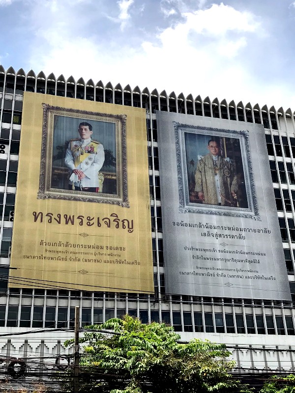 右は、去年の10月に亡くなった先代のタイ国王ラーマ9世。プミポン国王と呼ばれた。