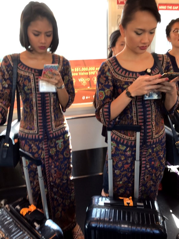 伝統衣装のケバヤの制服姿の、シンガポール航空のCA.