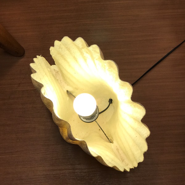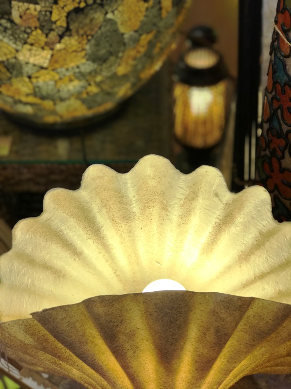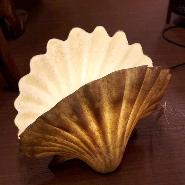 バリ島のシャコ貝のデザインのランプ。灯りをつけると、雰囲気抜群!