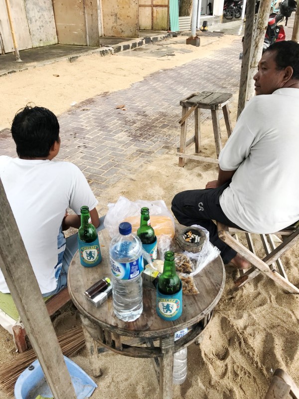 ビンタン飲みながら、スコールが通り過ぎるのを待っています。