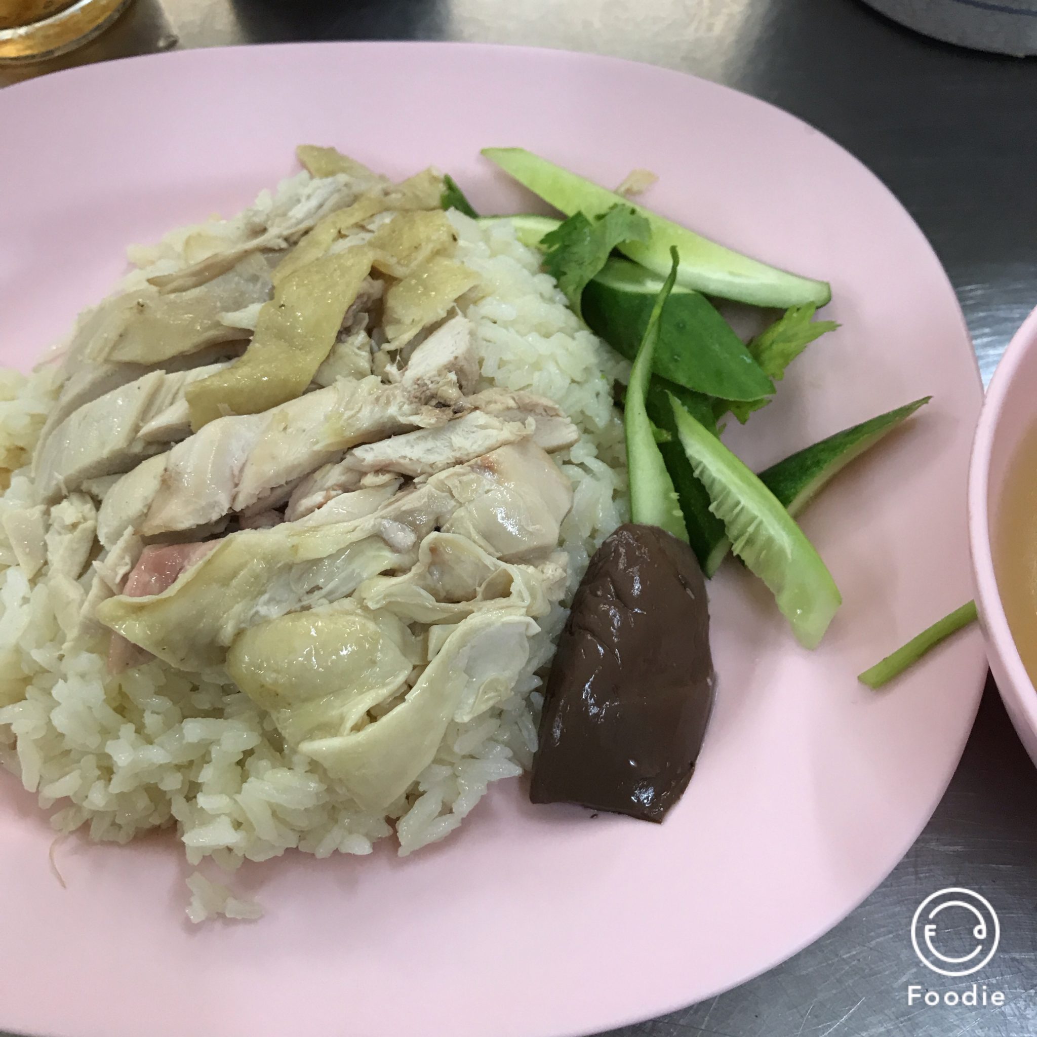 カオマンガイ。海南鶏飯。茹で鶏とその茹で汁で炊いたごはん。タレとスープが付きます。ここのカオマンガイおススメです。めちゃ美味!鶏も柔らかくて味もしっかり、タレも辛めの好みのタイプ。そしてスープ!何杯でもイケそう(笑)