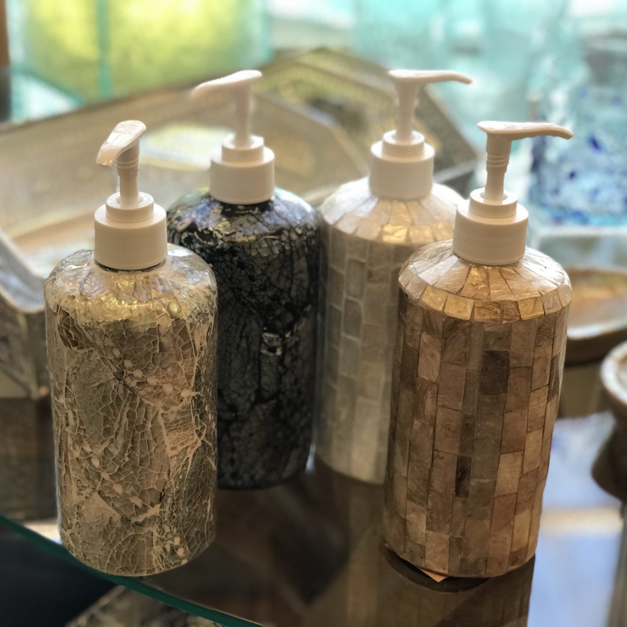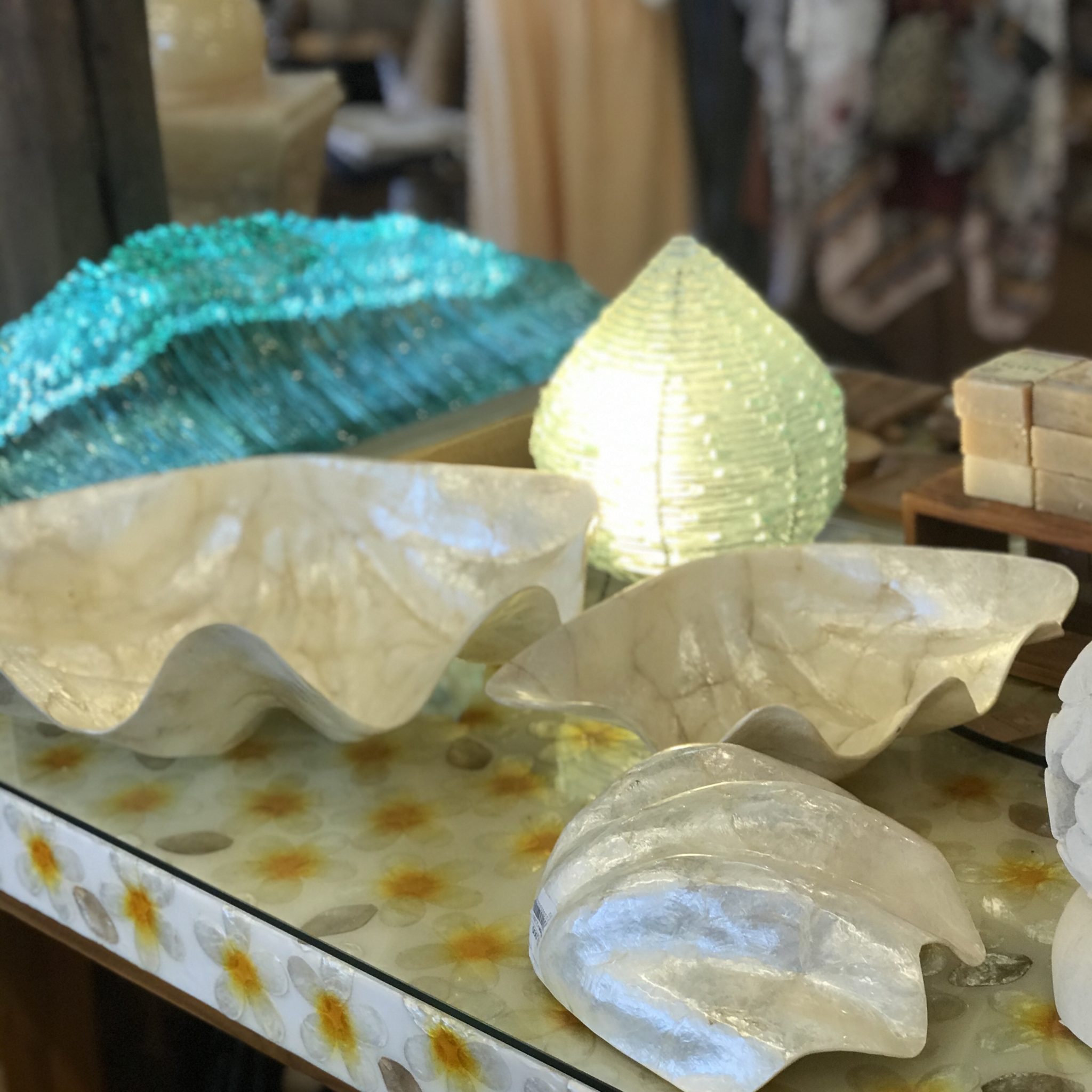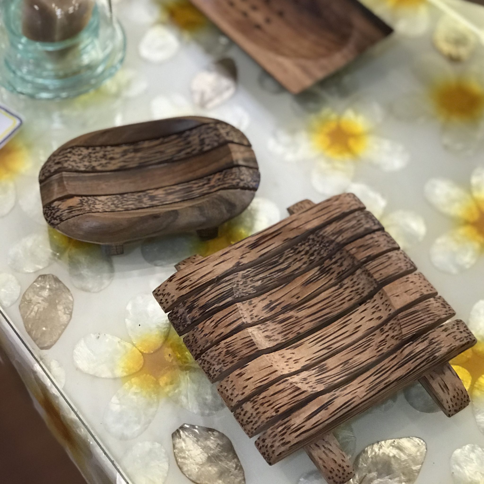 樹脂でコーティングしてあり、こんなのをポンと洗面台に置いたら、たちまちオシャレ空間に。