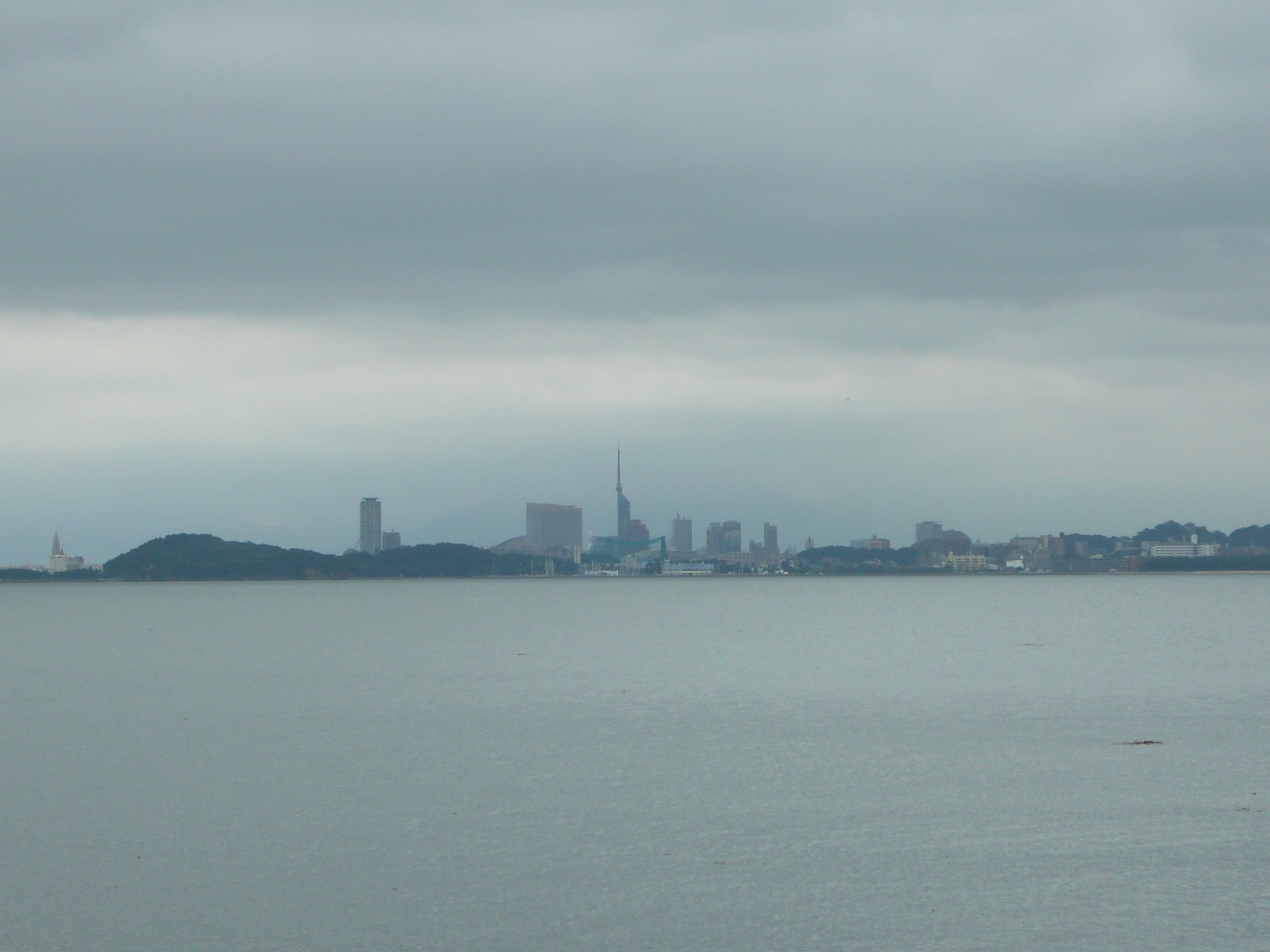 対岸のももち浜に、福岡タワーやヤフードーム、シーホークが見えます。