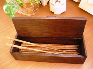 そのオールドチークを使った蓋付きの小物入れです。