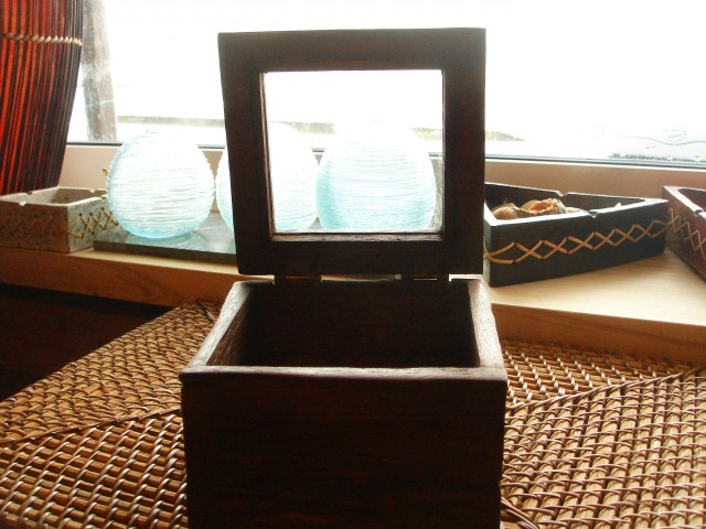 オールドチークを使った、ガラス蓋付きの小物入れです。