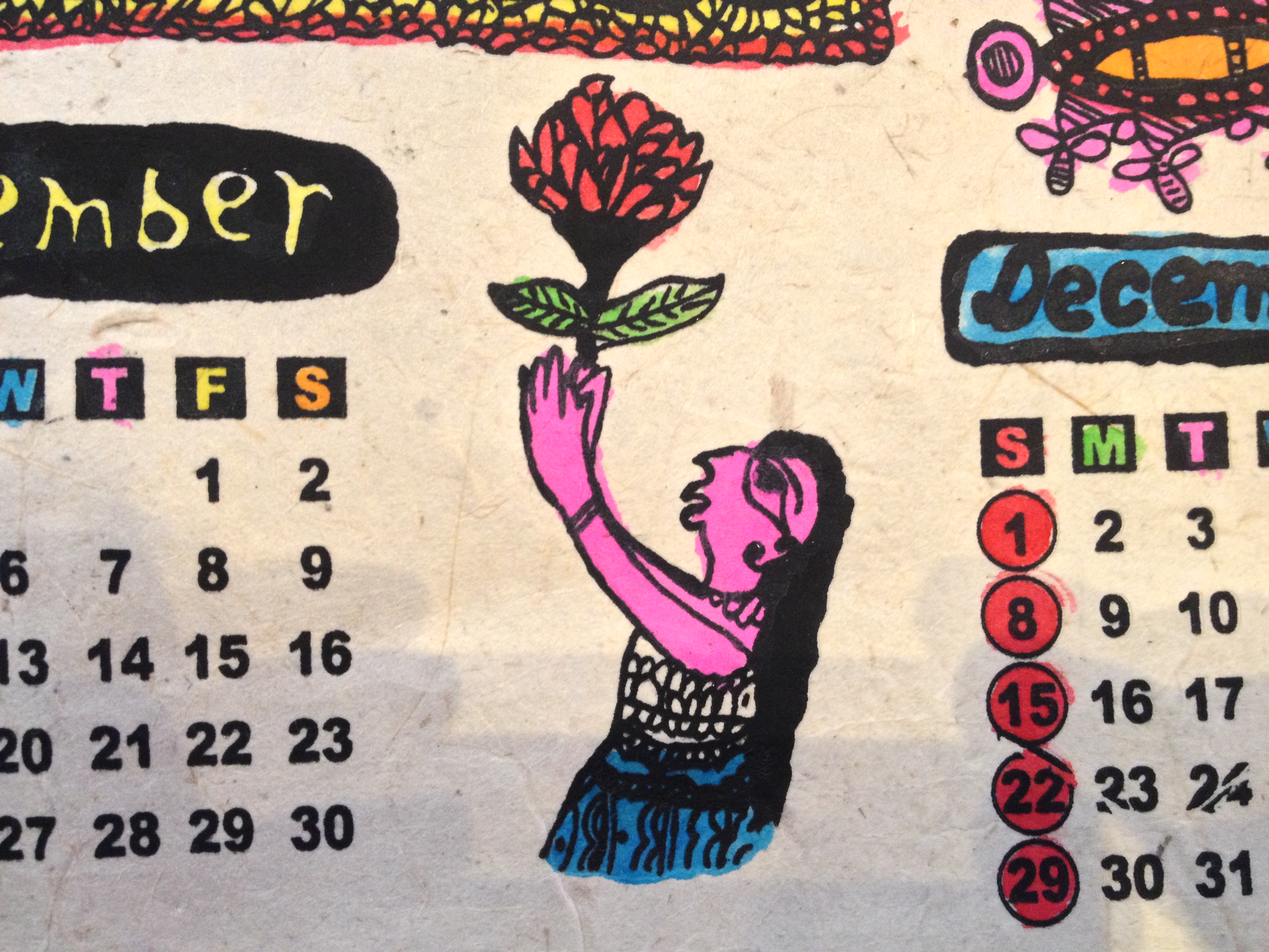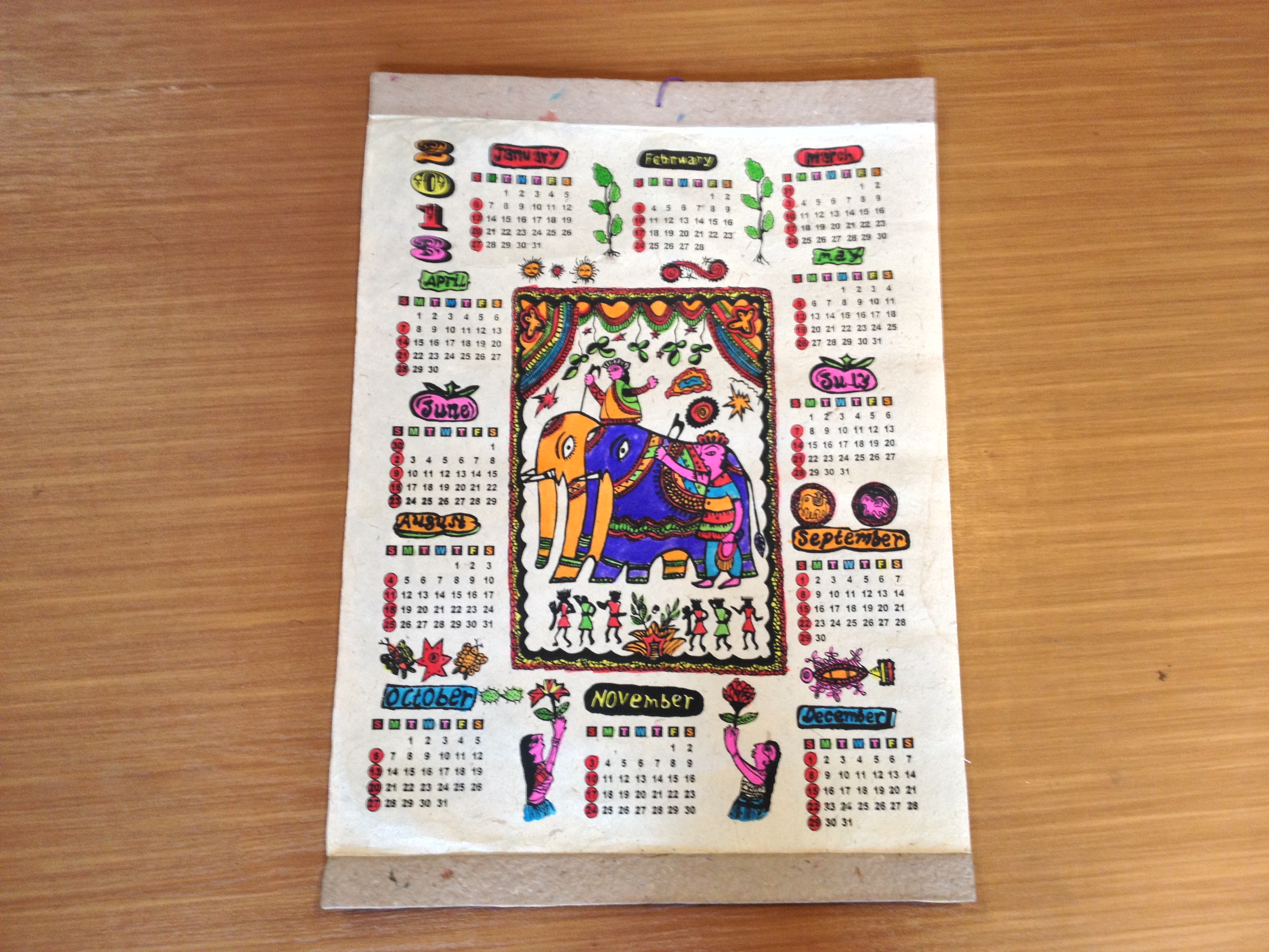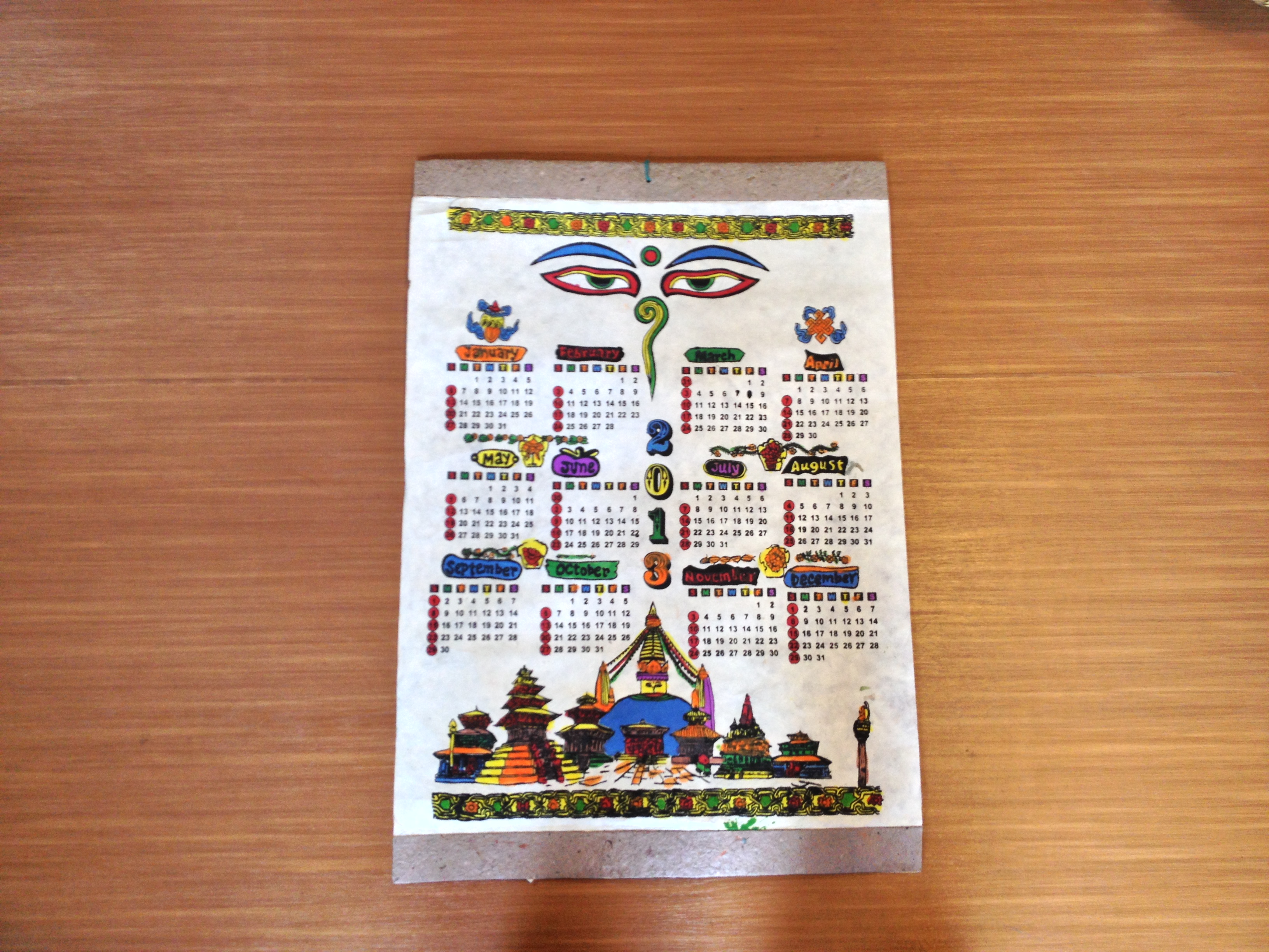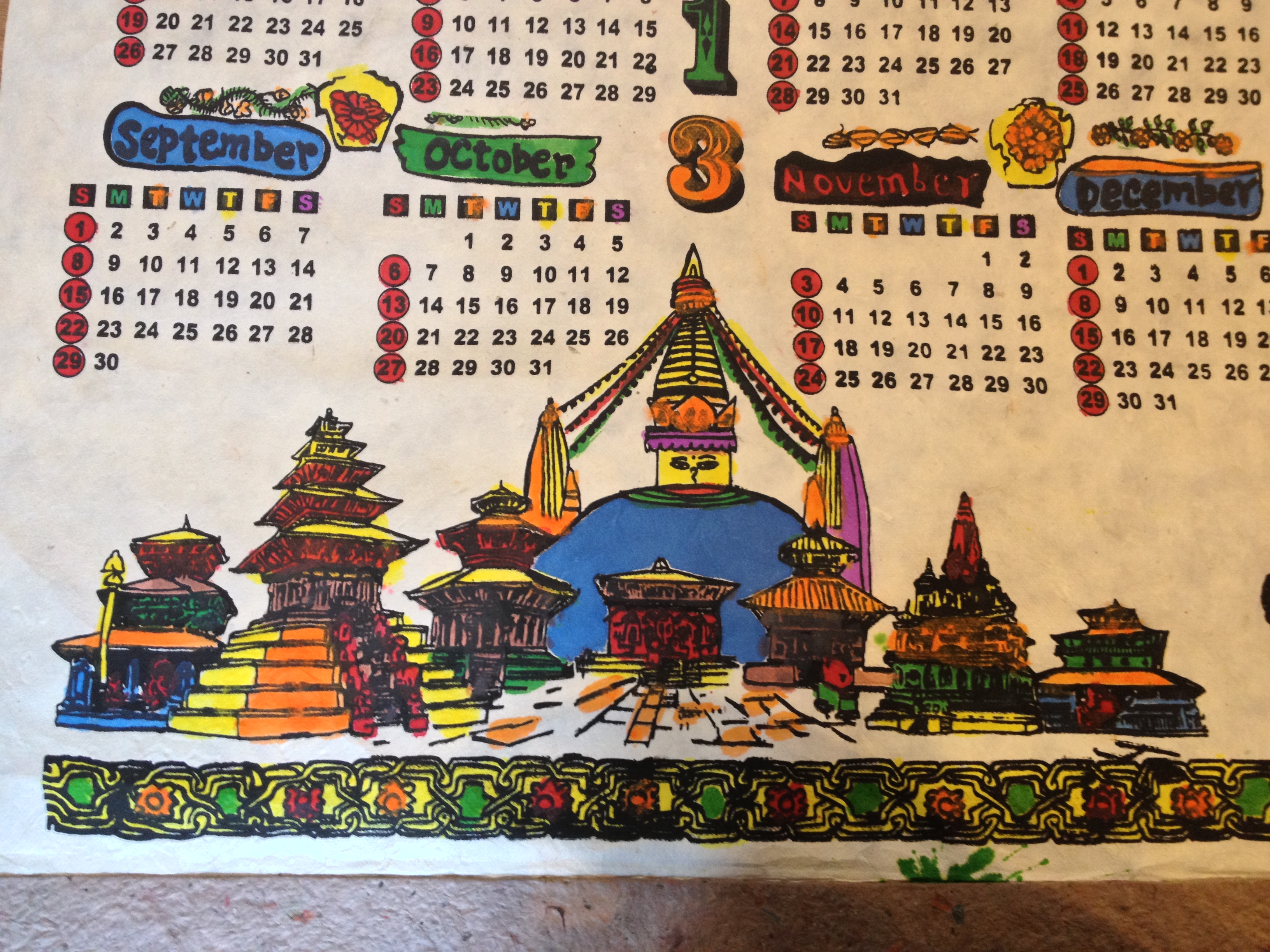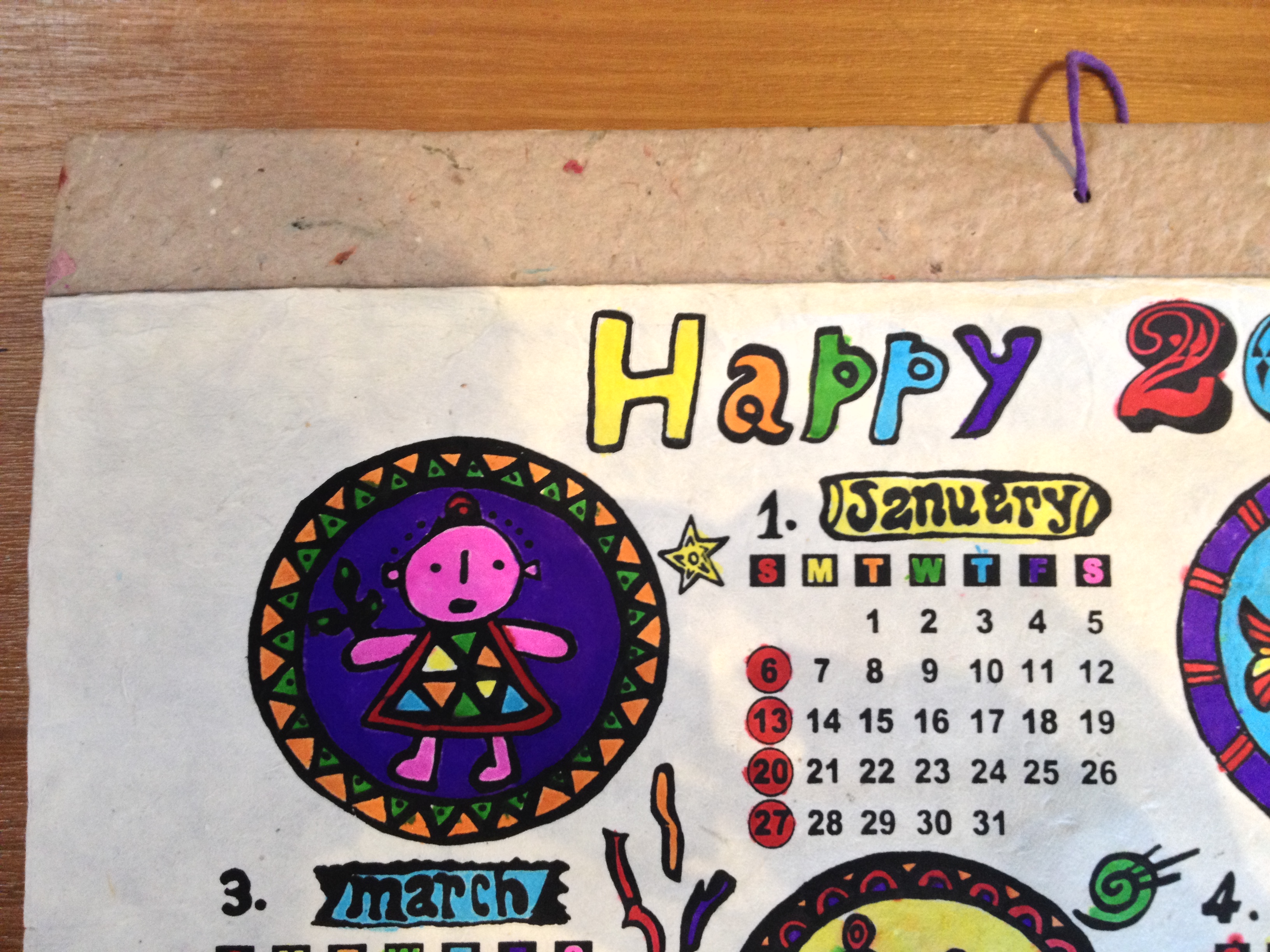 カラフルでポップなデザインのかわいいネパール製のカレンダーです。