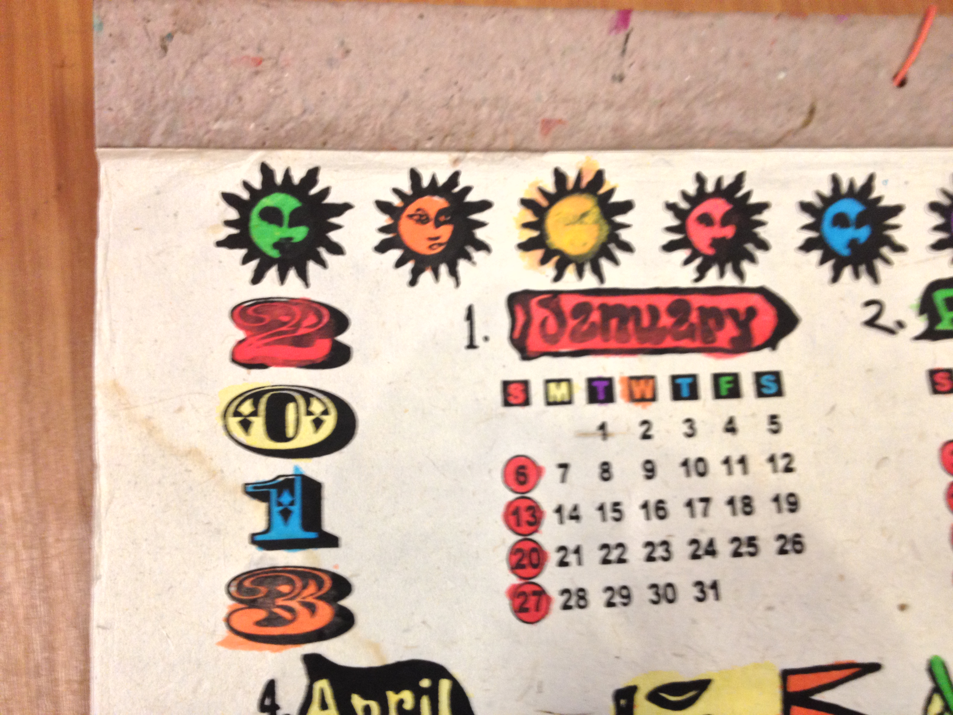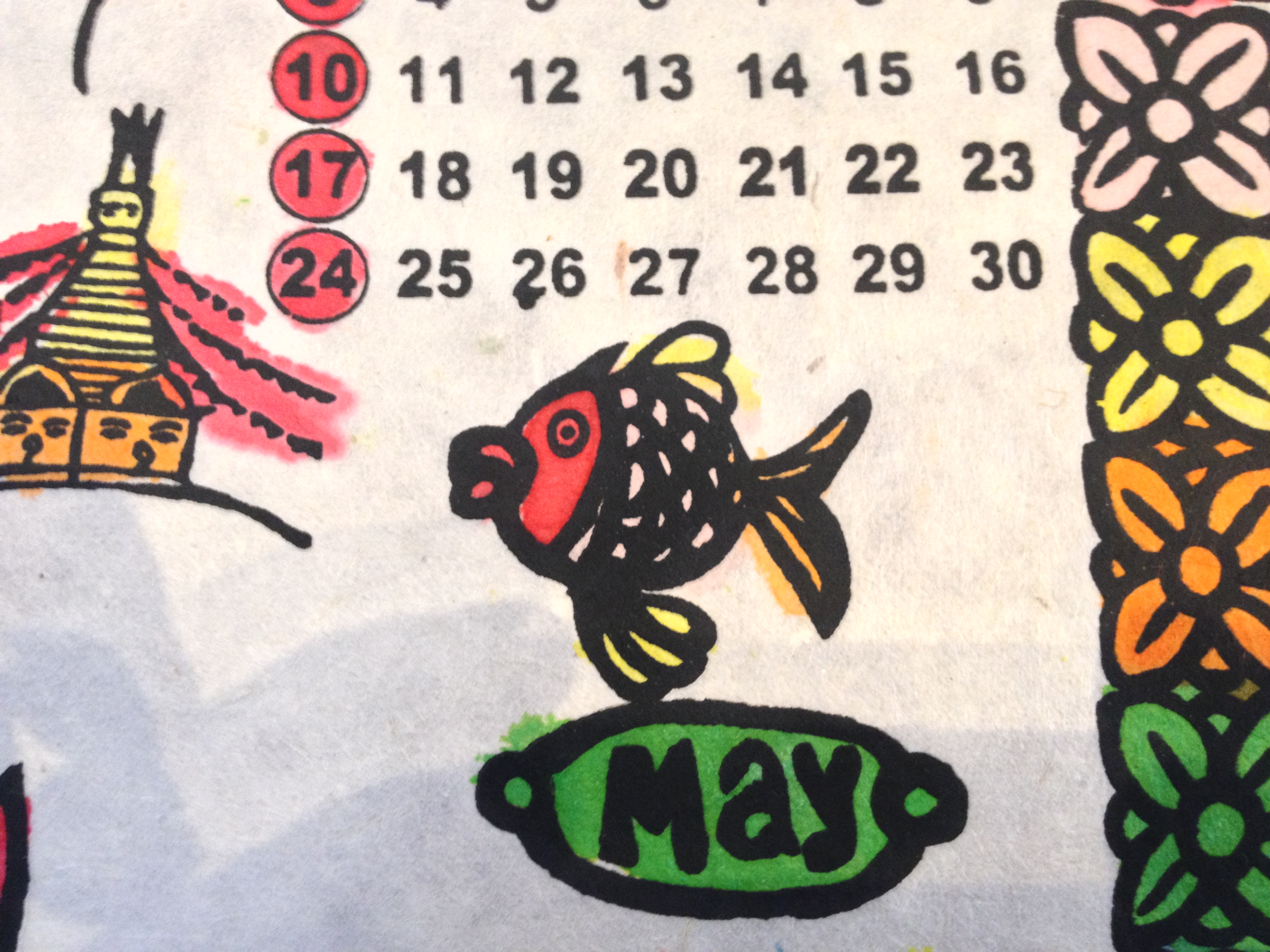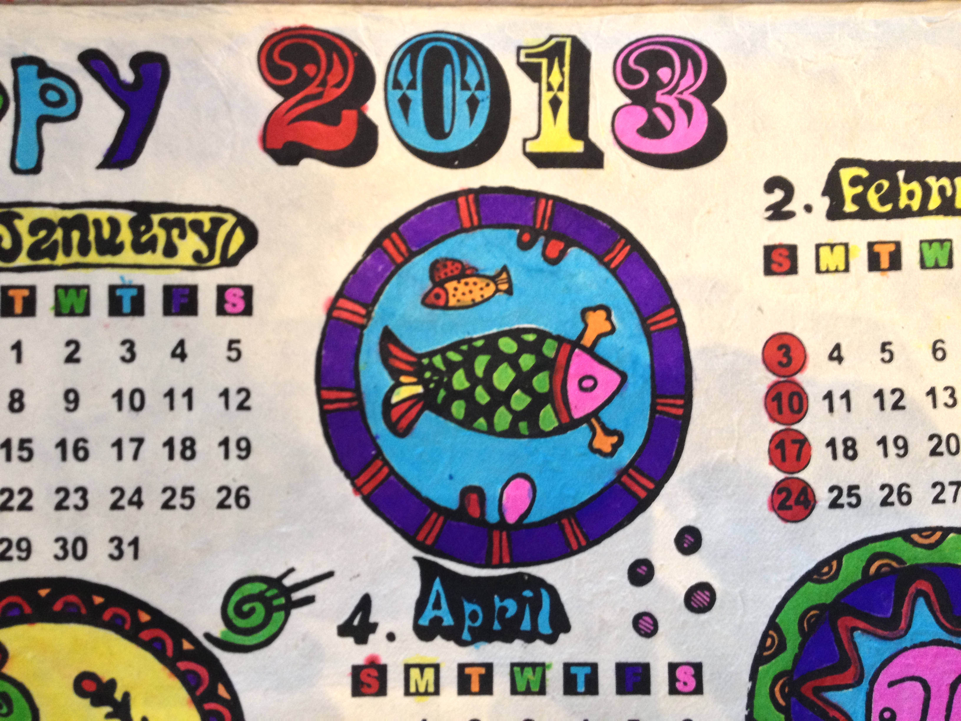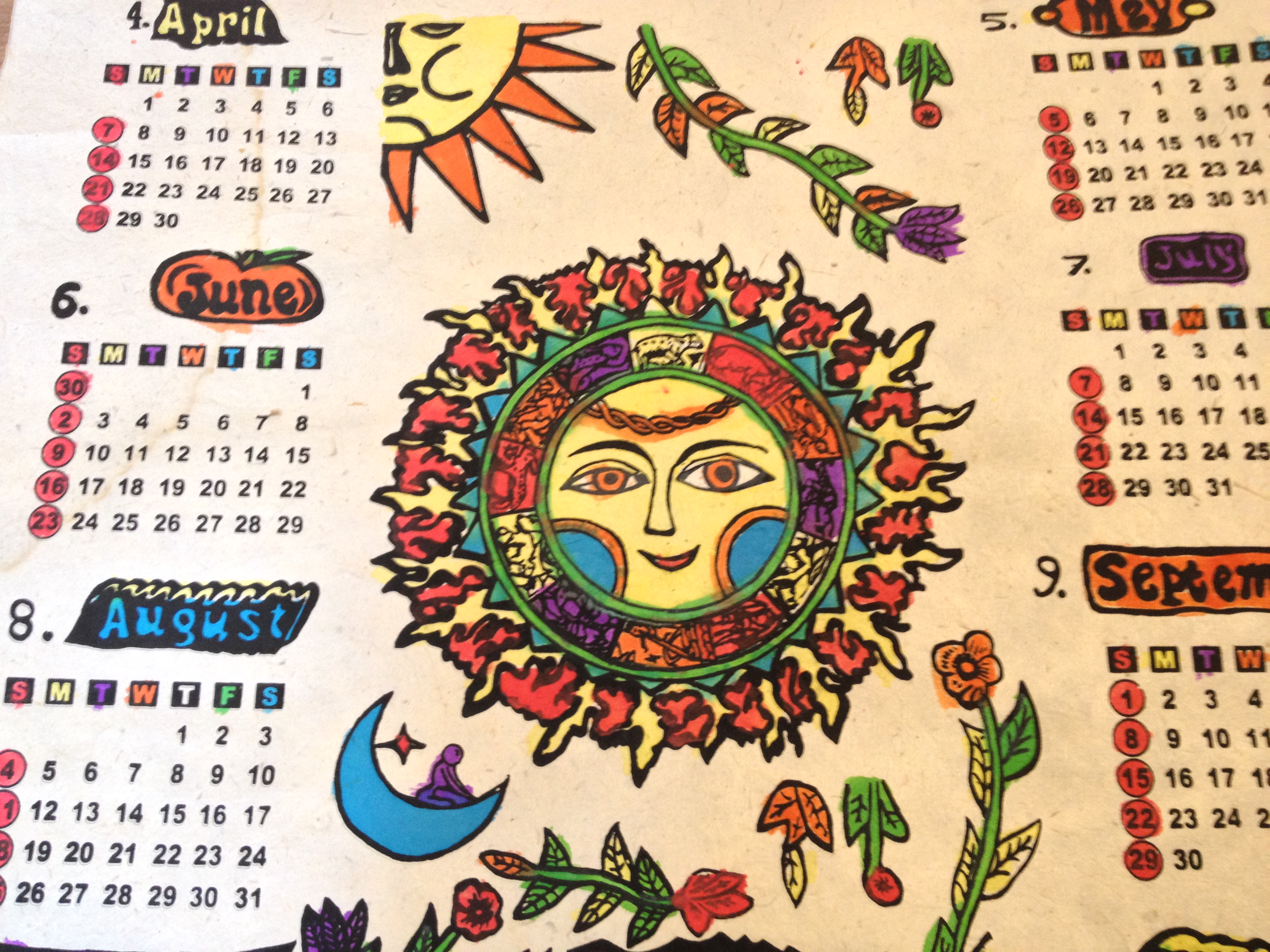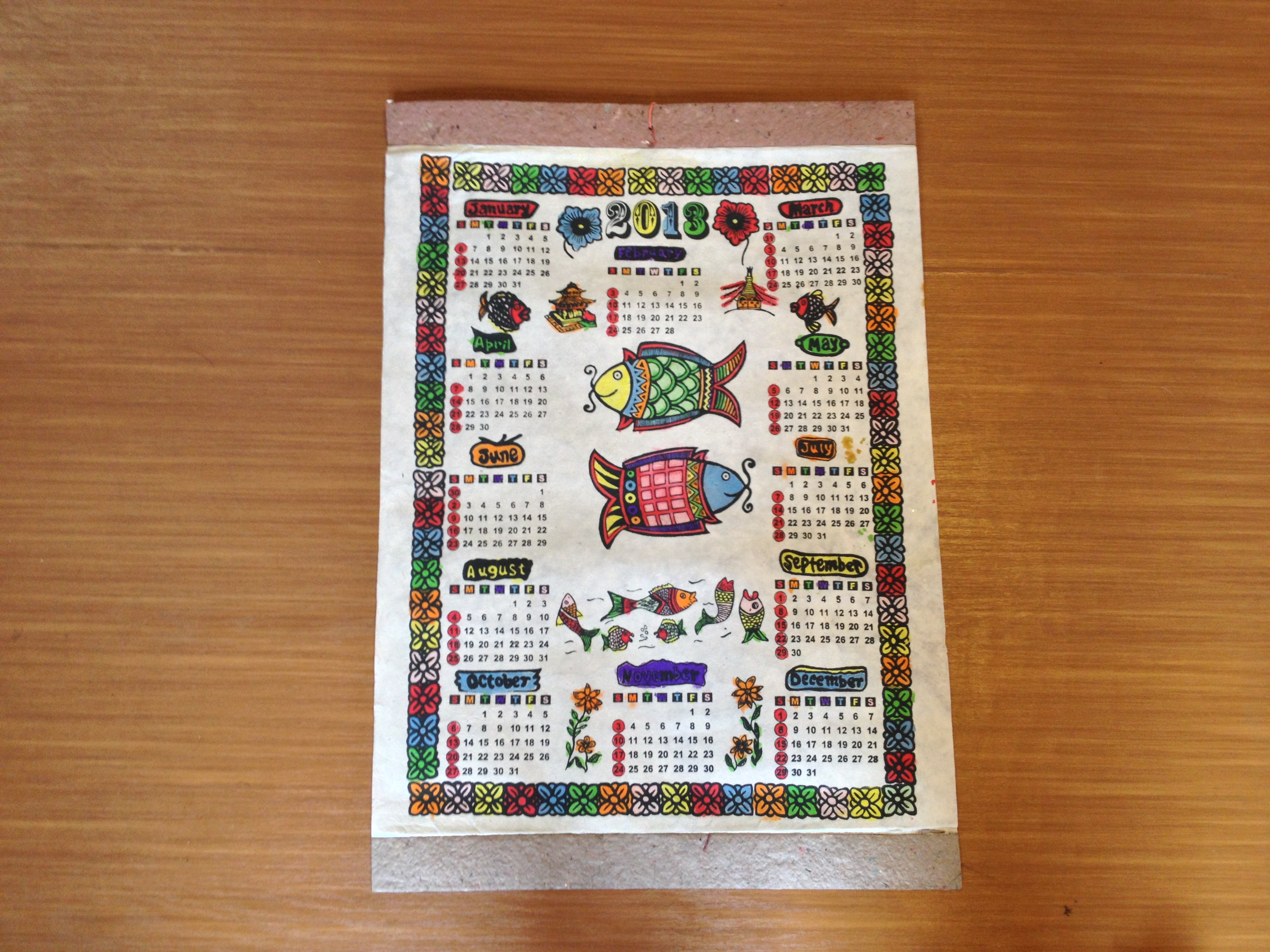 カラフルでポップなデザインのかわいいネパール製のカレンダーです。
