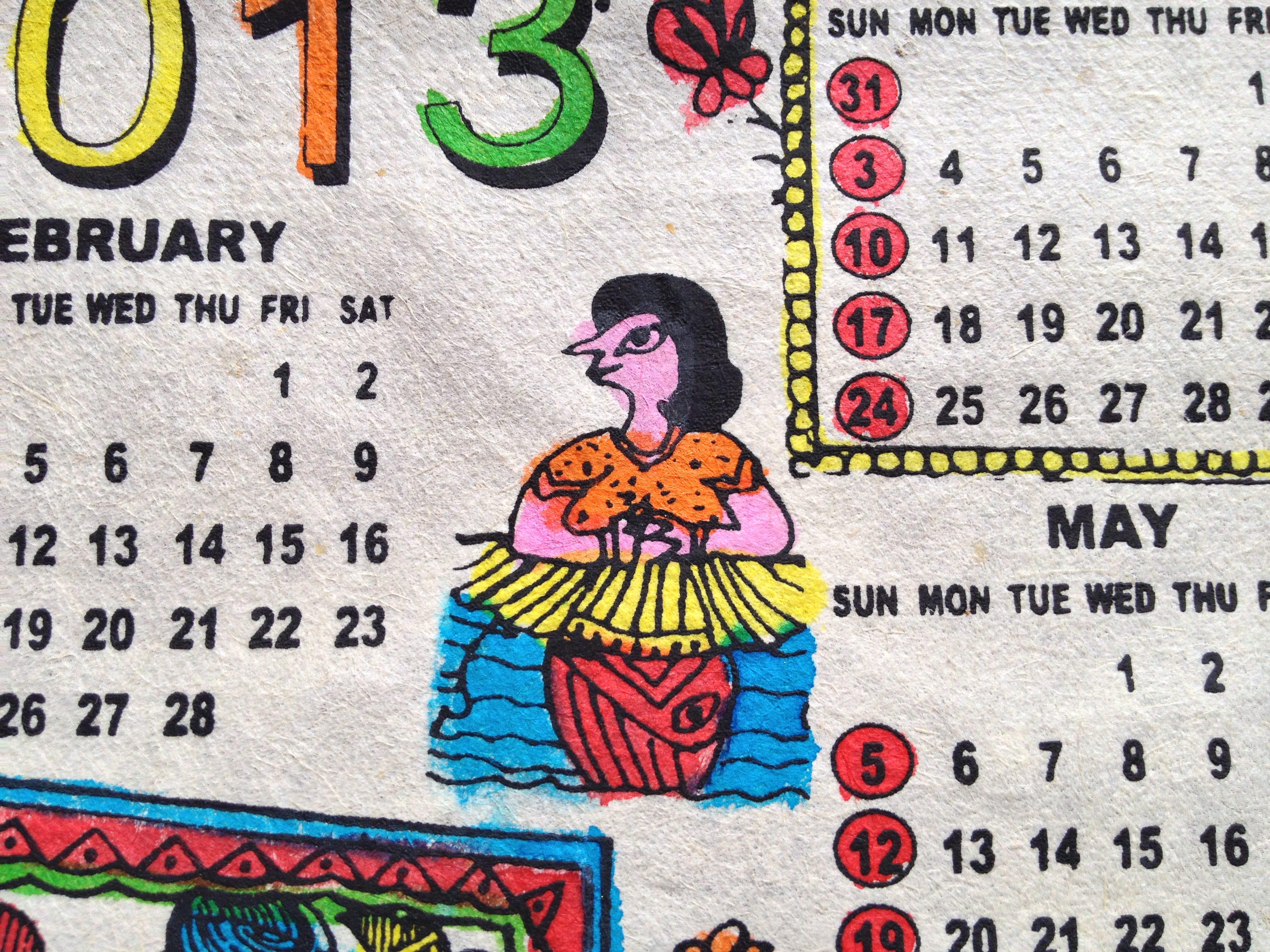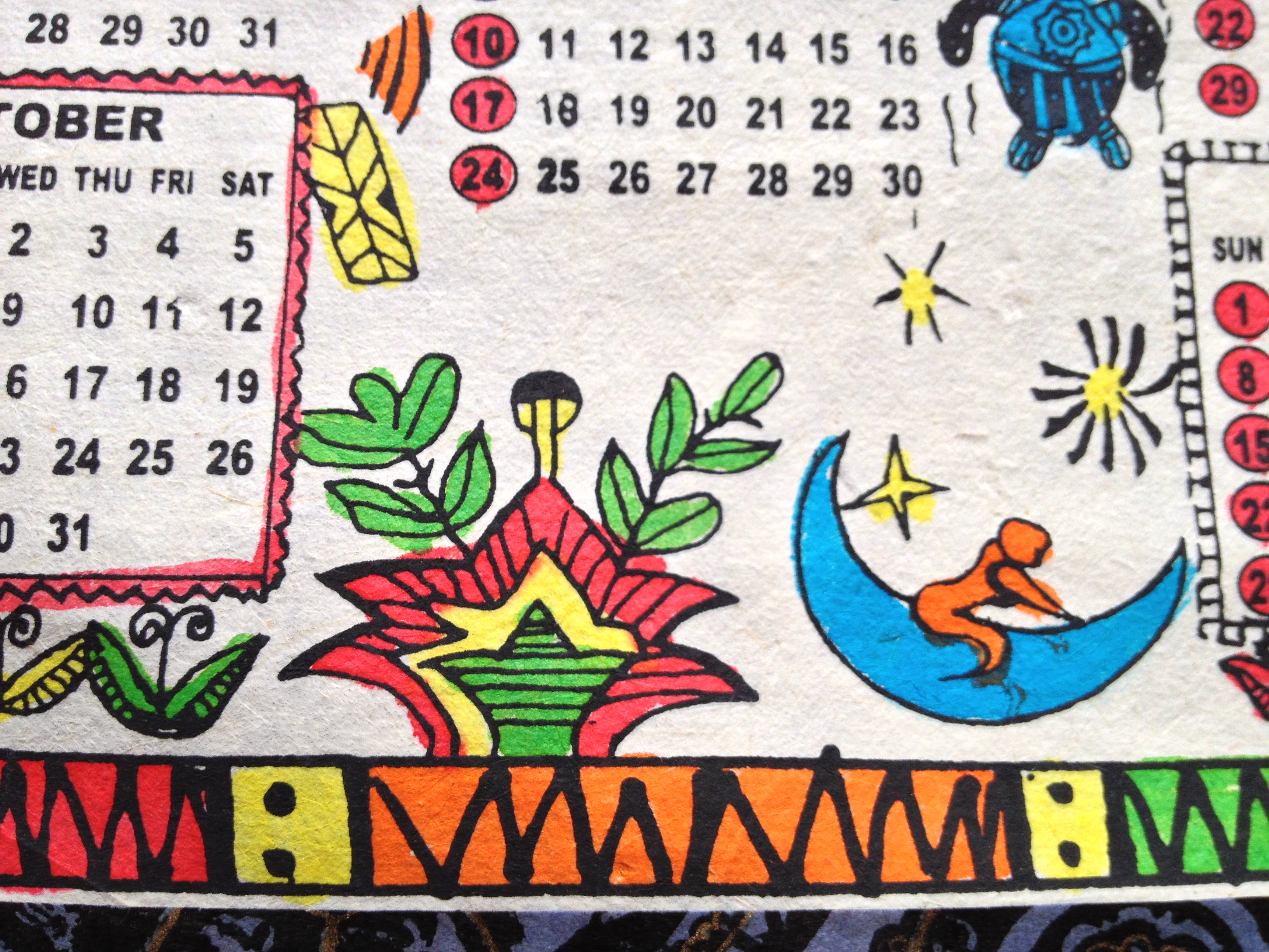 家の土壁に絵を描いたのがそもそものはじまりというミティラーアート。