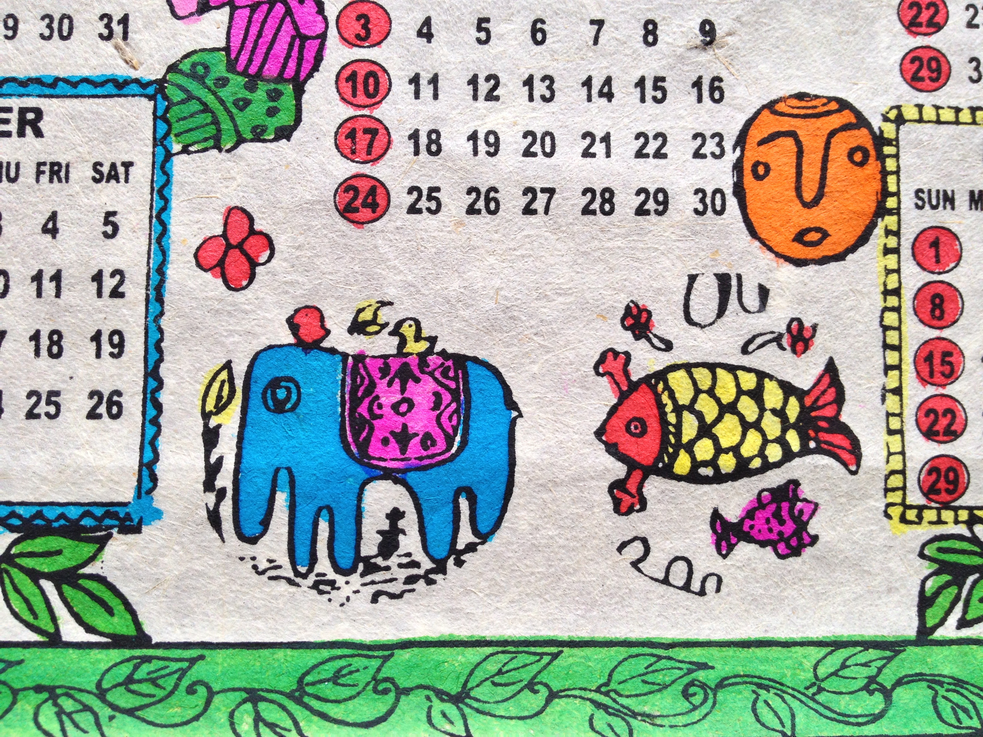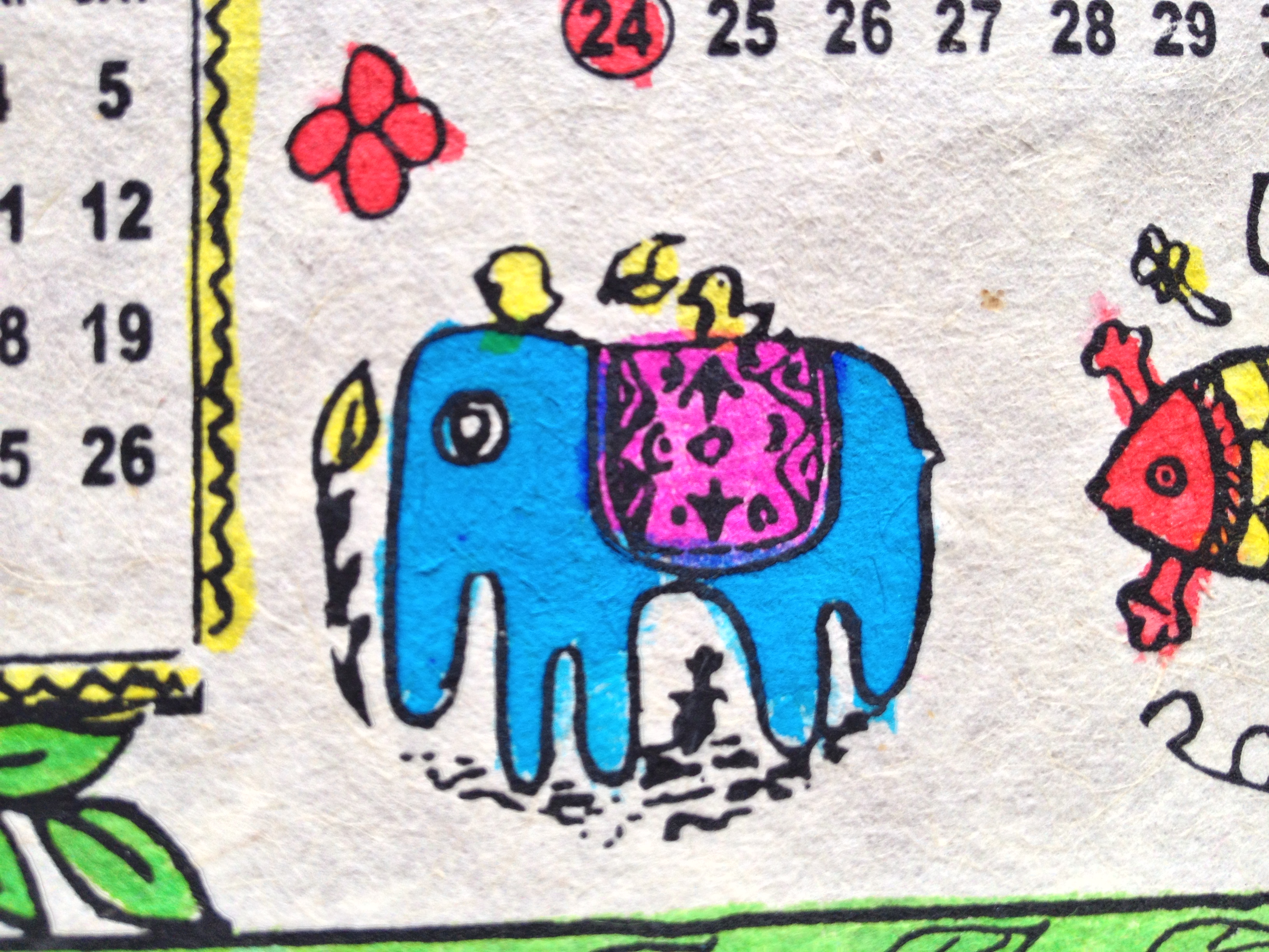 象、孔雀、虎や結婚のとき、光の祭り「ティハール」の時などの絵が描かれます。