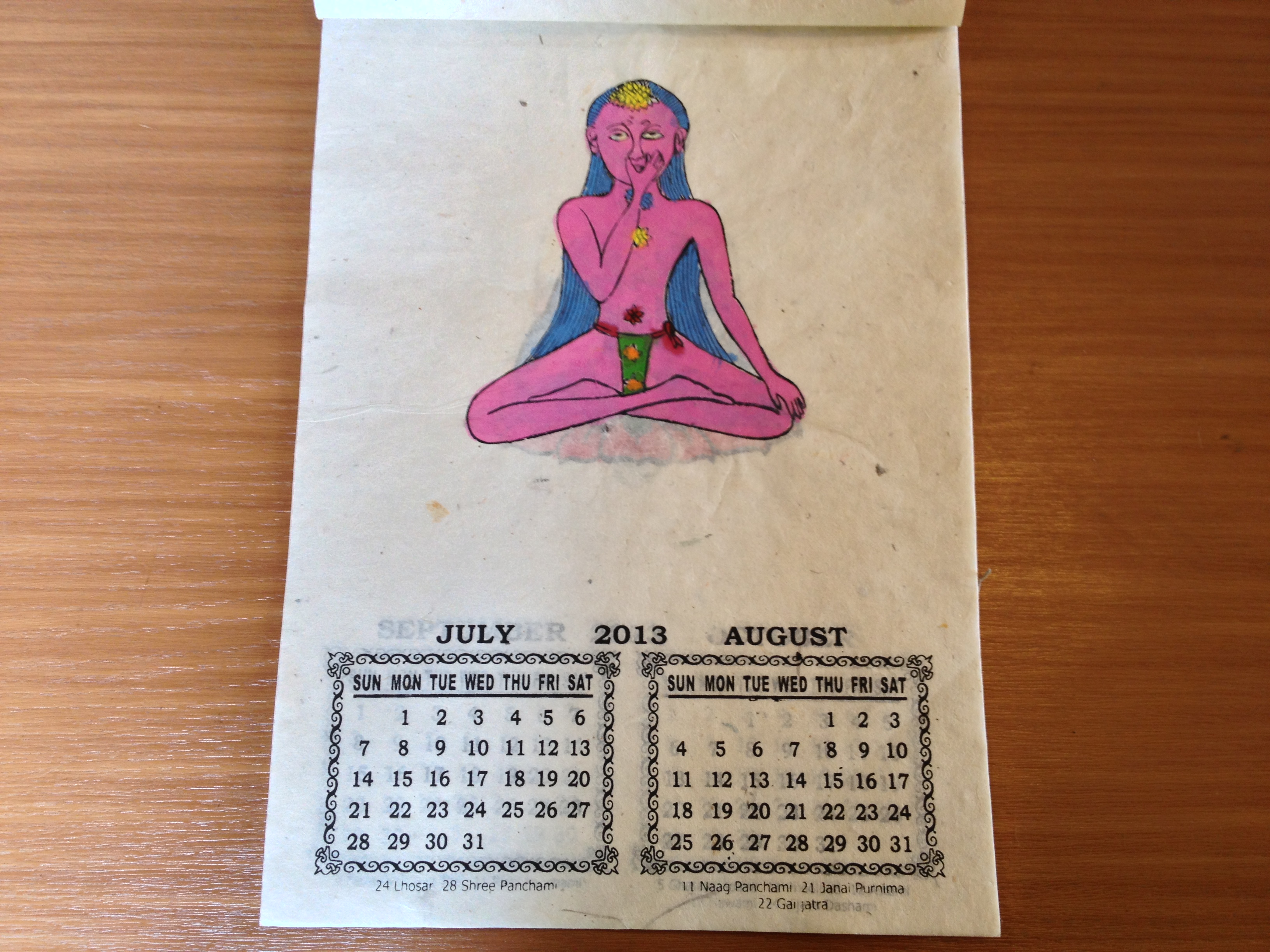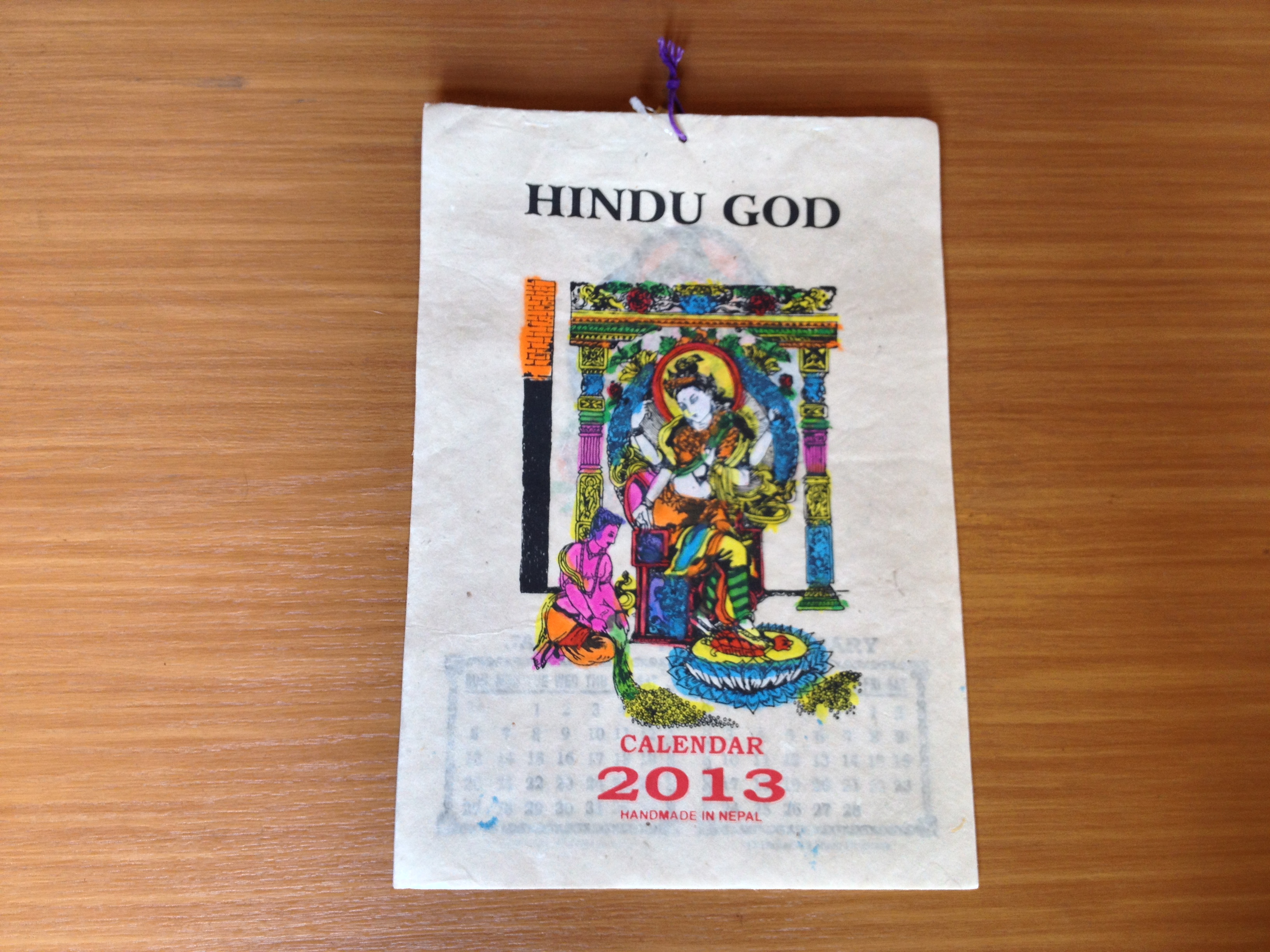 カラフルでポップなデザインのかわいいネパール製のカレンダーです。