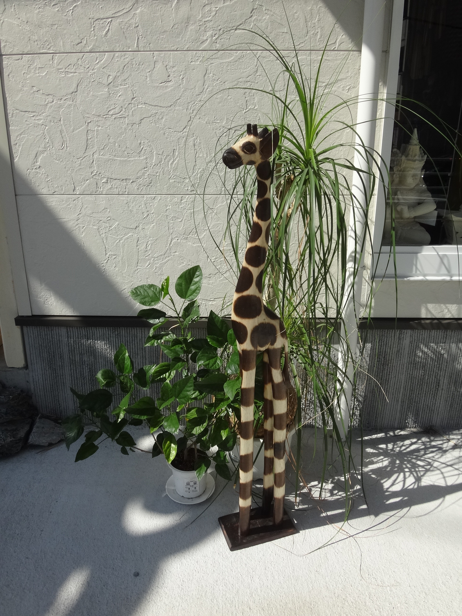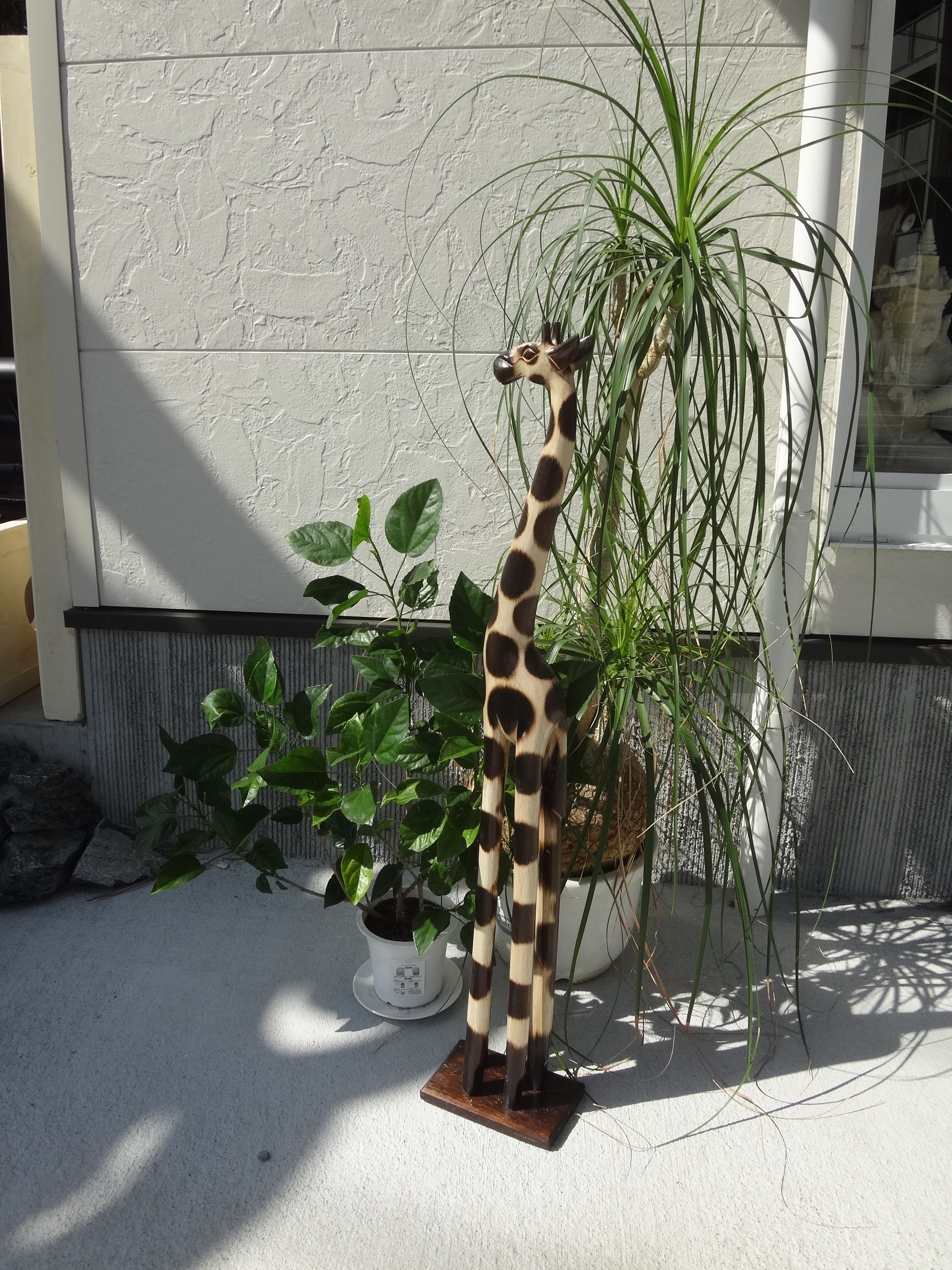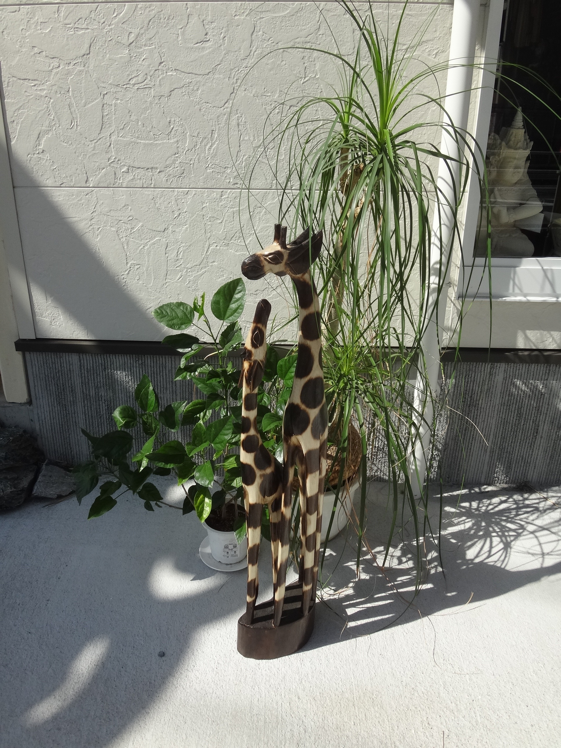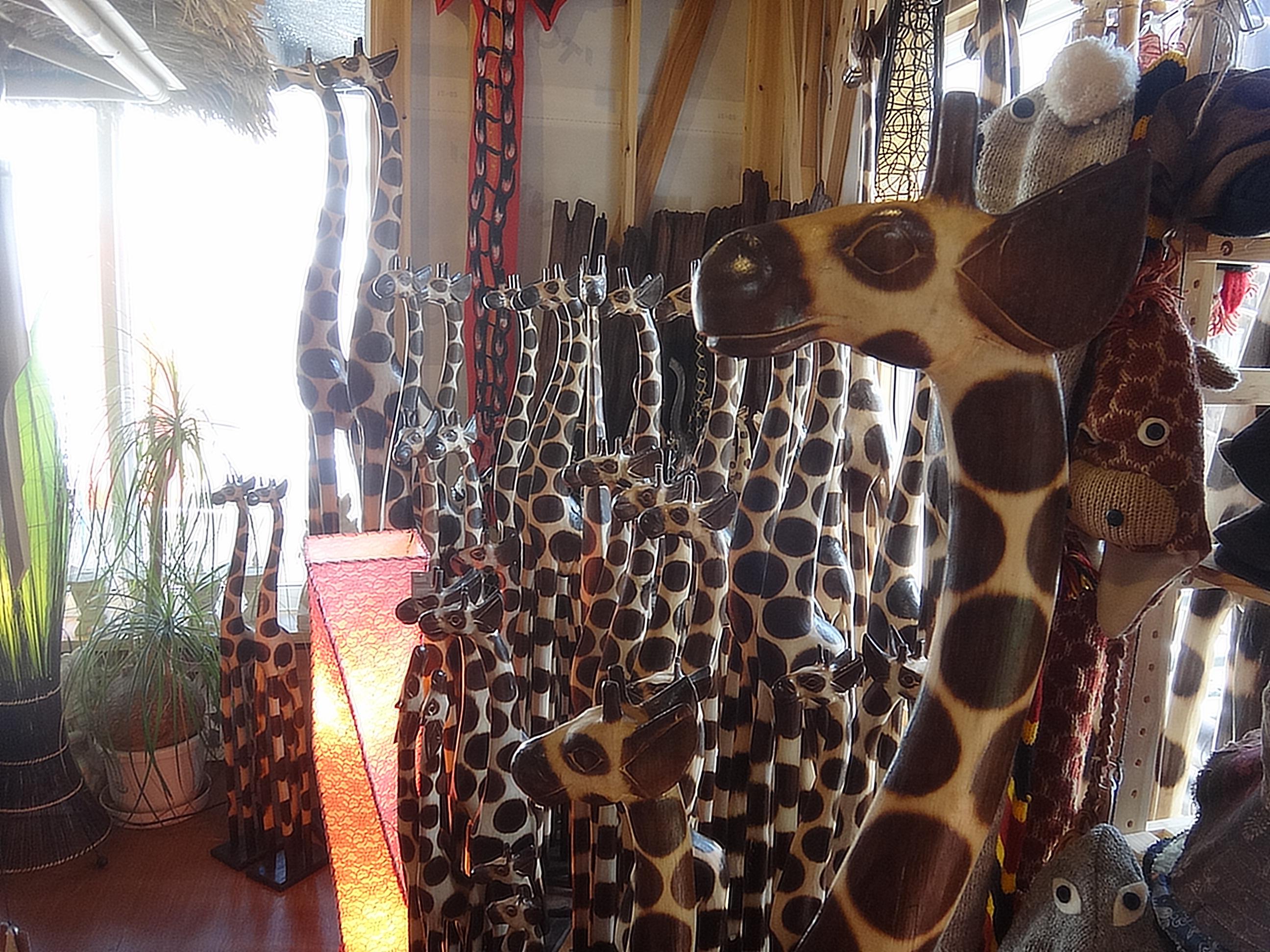 お店の一角にバリからやってきた、木彫りのキリンのコーナーを作りました。