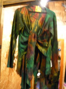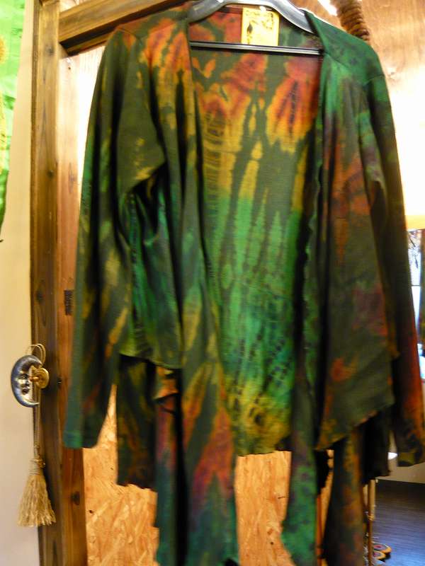 この写真の洋服は、タイダイという絞り染めの手法で染められた1品☆