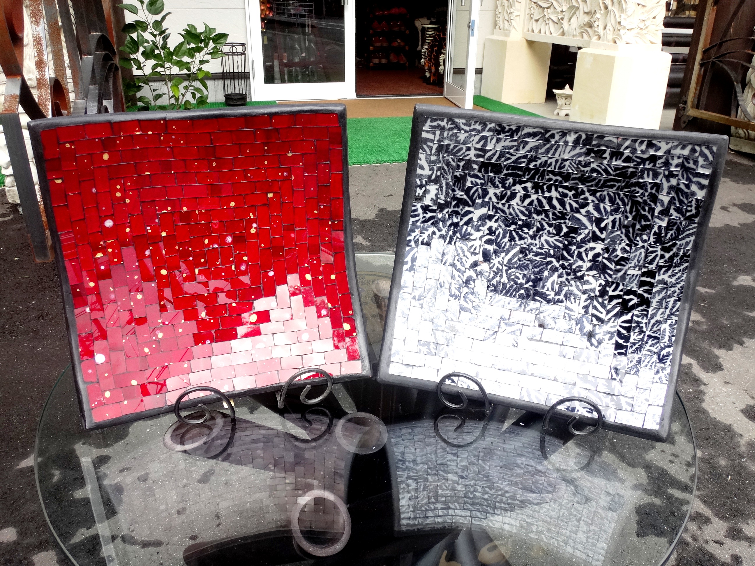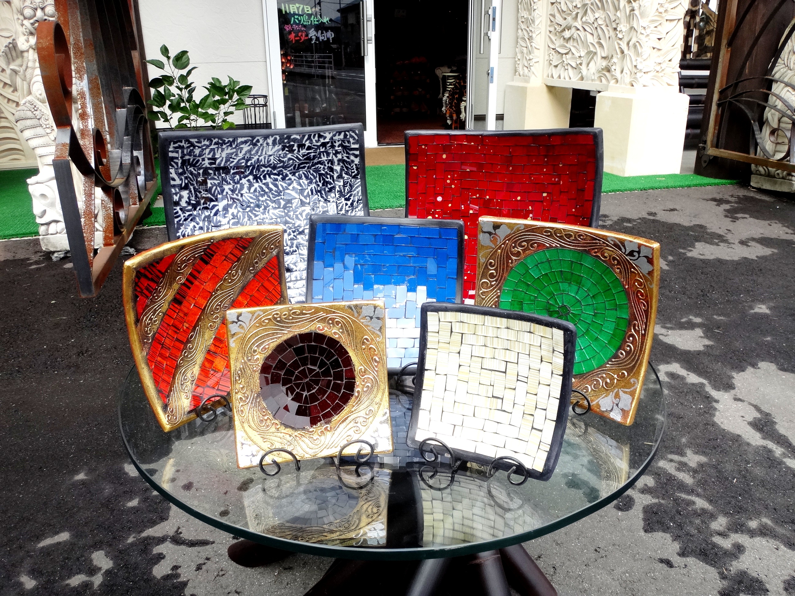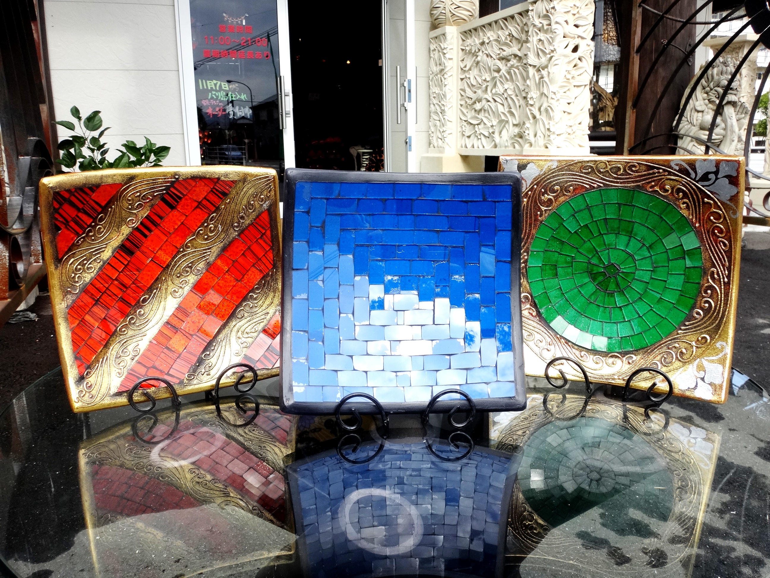 模様がついた色ガラスを1枚1枚丁寧に貼りつけたプレートです。