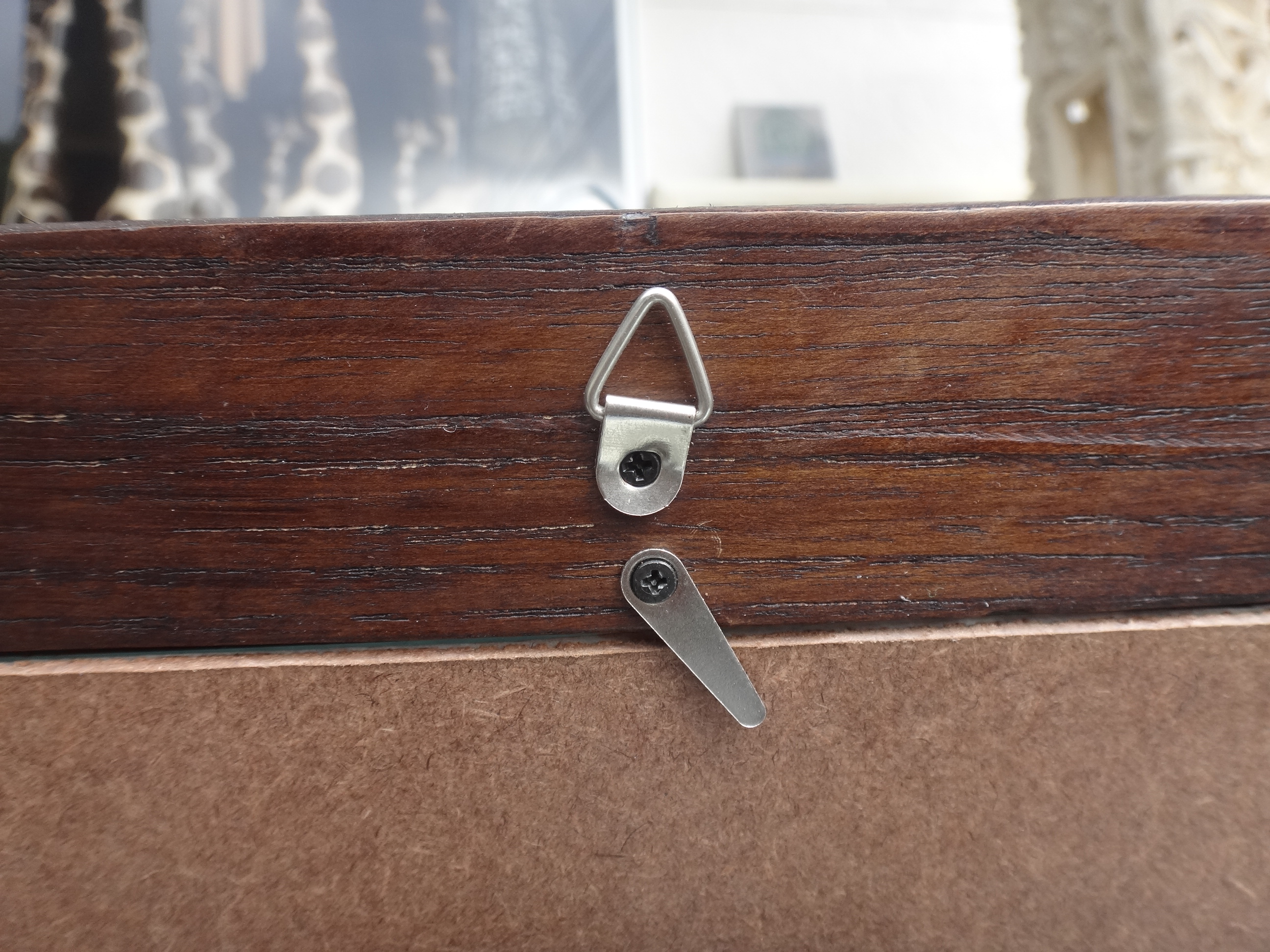裏に三角の金具が付いており、壁に掛けることも出来るようになっています。