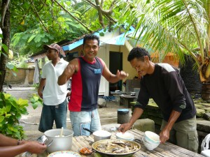 今回はバリで食べた感激の料理です。 鰹の頭を丸ごと使ったカレー”です。もうめちゃくちゃ美味しかった!タイ米(現地ではナシって言います) 香辛料を自分の好みで入れて食べるんですけど、その香辛料がその辺の生えている草みたいなものを石で叩いて細かくして 入れるんですよ。レストランとかは違うんでしょうけど、現地人は野性的です。初めて味わうカレーの風味に感激しました。