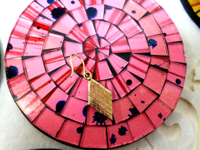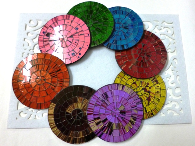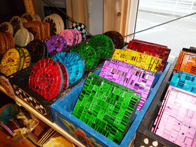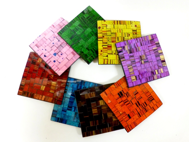 このコースターは、陶器に色ガラスや、ラメの付いたガラスを