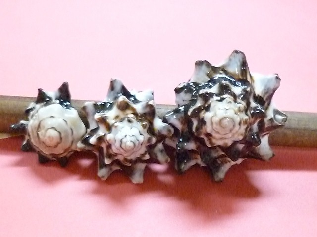 ココナッツの殻にシェルやシルバーを象嵌したリング。