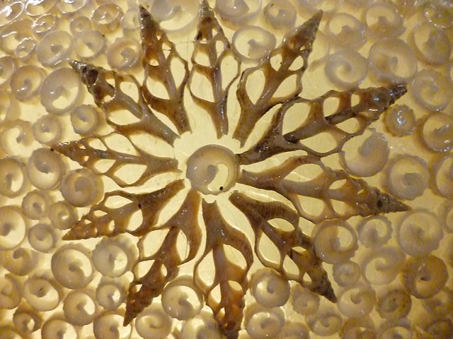 丁寧に一つずつ貝殻を貼り付けてあり、